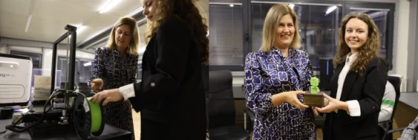 Në shenjë mirënjohjeje për mbështetjen e vazhdueshme, siç thekson Ministria, studentët i dhuruan asaj një statujë që e bënë vetë dhe e printuan në një printer 3D në laborator.