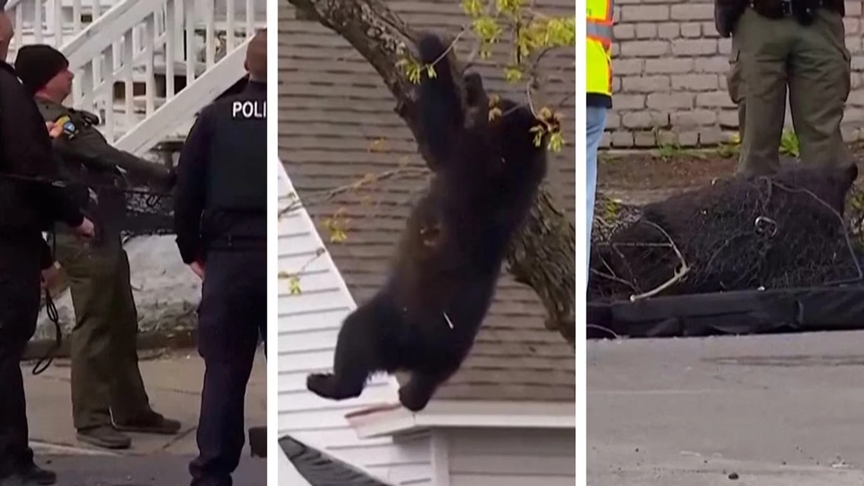 Shikuesit mbushën bllokun me gjethe në veri të shtetit, ku policia lokale po përpiqej të lironte ariun e zi të ri që dukej se ishte bllokuar në një pemë, transmeton Telegrafi.