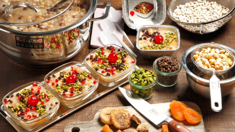E bërë me grurë të zier, fruta të thata, arra e erëza aromatike, ashurja mbetet një nga ëmbëlsirat më të vjetra dhe më të dashura të kuzhinës sonë tradicionale, që sjell bashkim e kujtime të mira në tryezat tona, transmeton Telegrafi