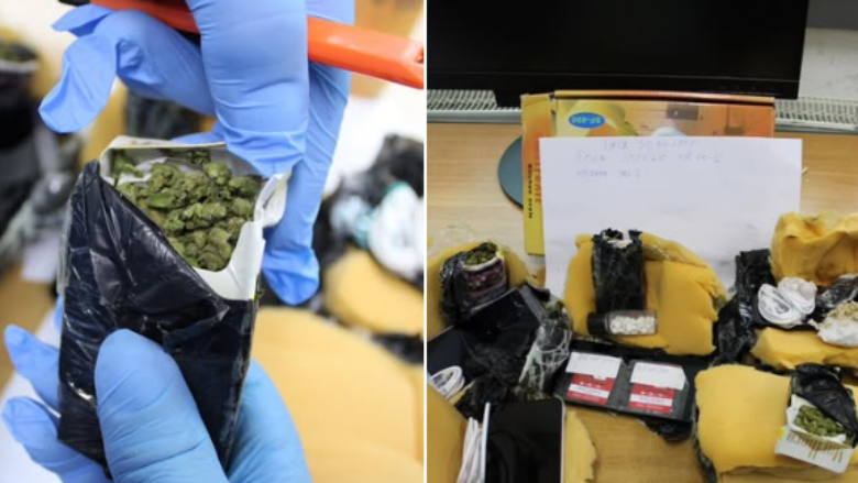 “Qeset janë lokalizuar dhe brenda tyre janë gjetur: lëndë e dyshuar narkotike e ndarë në disa njësi, me peshë të përgjithshme prej 98 gramësh (me mbështjellës); pesë telefona të markës Samsung, prej të cilëve njëri kishte SIM kartelë të vendosur të operatorit IPKO, si dhe dy SIM kartela të papërdorura të të njëjtit operator”, thuhet në postim.