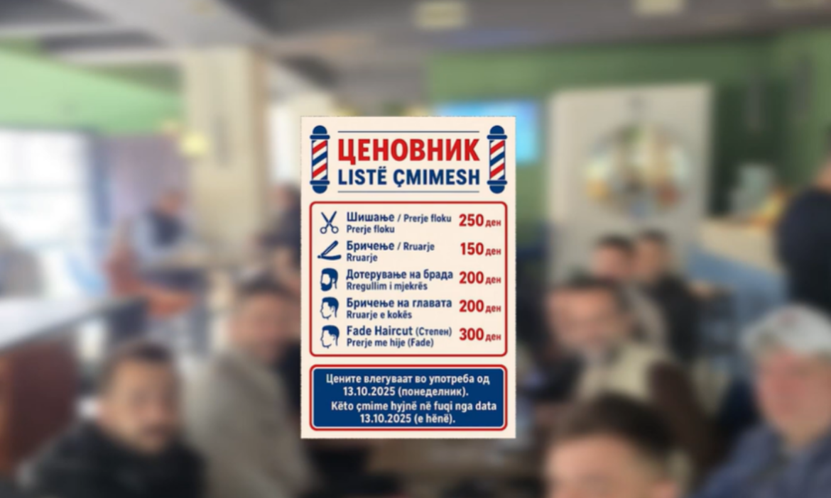 Kërçovë, 11 tetor – Berberët në Kërçovë kanë rritur çmimin e qethjes dhe rruajtjes. Një e qethur është bërë 250 ose 300 denarë – varësisht çfarë kërkon, ndërsa një e rruar 200 denarë.