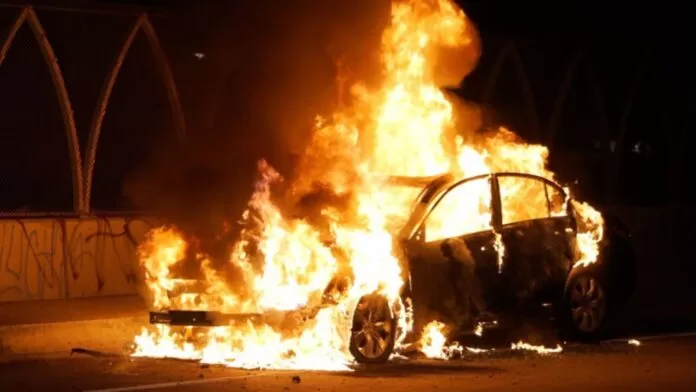 Nga MPB thonë se derisa policia po kryenin detyrat zyrtare, automjeti u përfshi nga flakët.