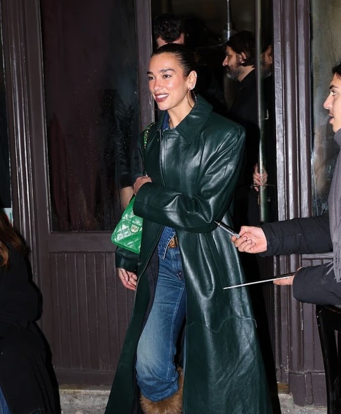 Pamjen e kompletoi me çizme të larta ngjyrë kafe me gëzof, një pallto të gjatë lëkure në ngjyrë jeshile të errët dhe një çantë Chanel, ndërsa Callum u shfaq më minimalist, me xhinse blu dhe një xhaketë bomber të zezë prej lëkure.