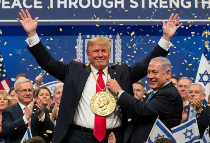 Postimi shoqërohej me një fotografi të krijuar me ndihmën e inteligjencës artificiale, në të cilën shfaqet vetë Netanyahu duke i vendosur Trump-it një medalje gjigande, që i ngjan Çmimit Nobel për Paqen.