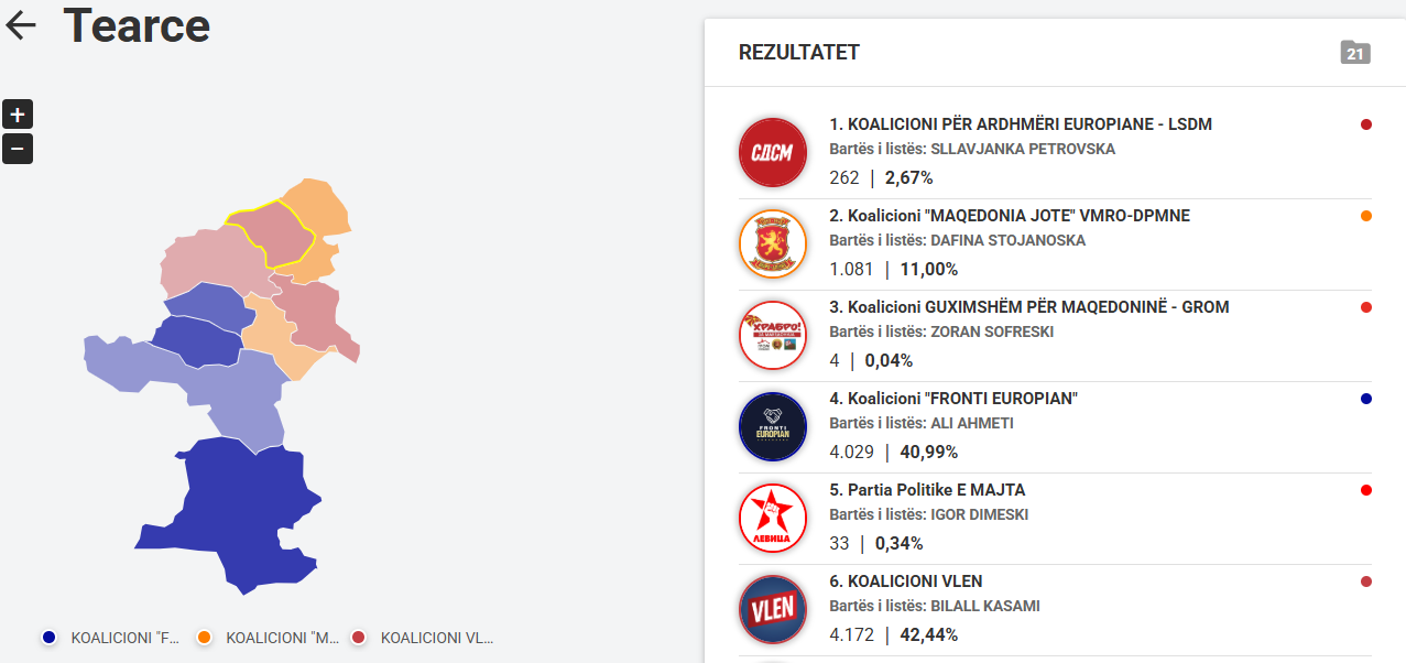 Kujtojmë që, nuk është matematikë apo llogaritje e komplikuar për të gjetur faktorin kryesor që determinon edhe fitoren e radhës në Komunën e Tearcës e që është partia në pushtet VMRO-DPMNE. Mbeten të shihen edhe zhvillimet tjera që do të ndodhin muajve në vijim por ajo që është çështje numrash është analizuar lartë se cila parti politike mund të sigurojë fitoren e një kandidati shqiptar në Strugë. /Zhurnal.mk