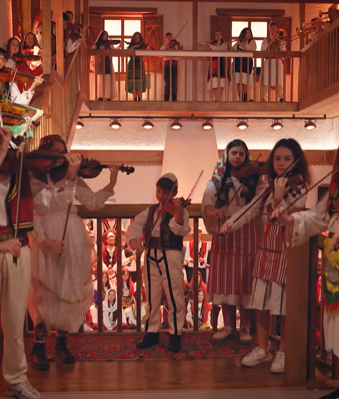 Në mjediset e qendrës kulturore, me veshje tradicionale shqiptare të të gjitha krahinave, të rinjtë interpretuan me instrumentet e tyre këngën “Rrjedh në këngë e ligjërime”.