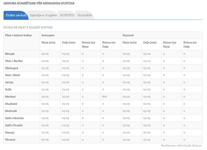 Sa i përket qarkullimit të kamionëve, nuk raportohet për pritje apo kolona të konsiderueshme në dalje në asnjë pikë kufitare.