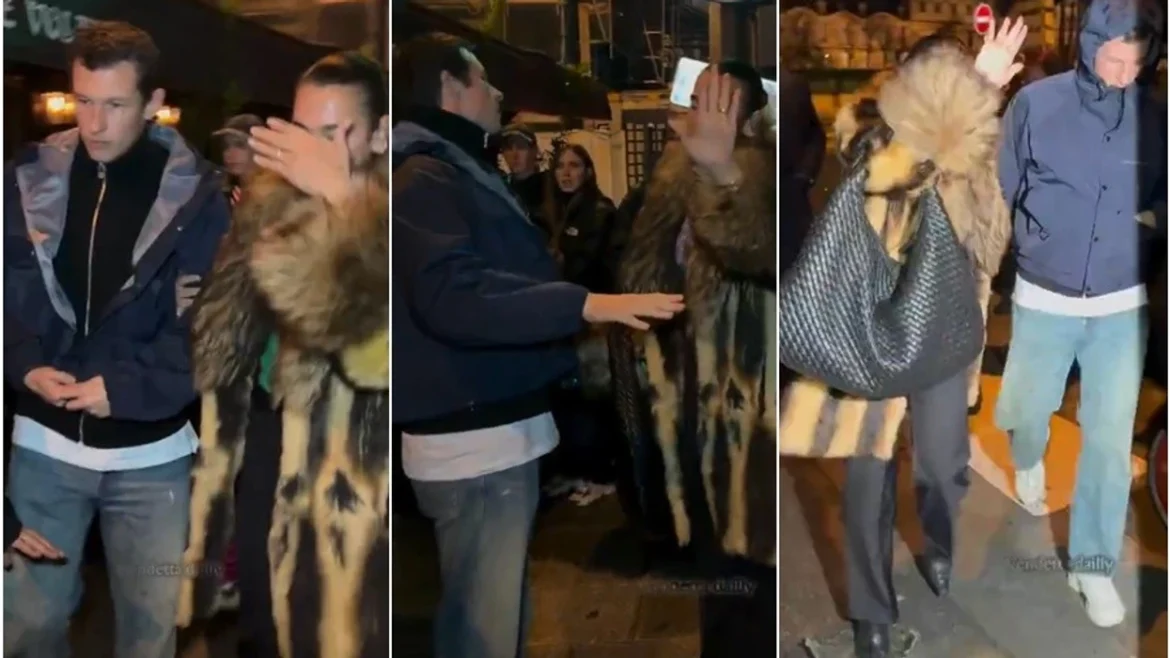 Ndërsa çifti po përpiqej të largohej nga një restorant, ata u rrethuan nga paparacë që filluan të bërtisnin, t’i ndiqnin nga afër dhe të kërkonin me ngulm fotografi.