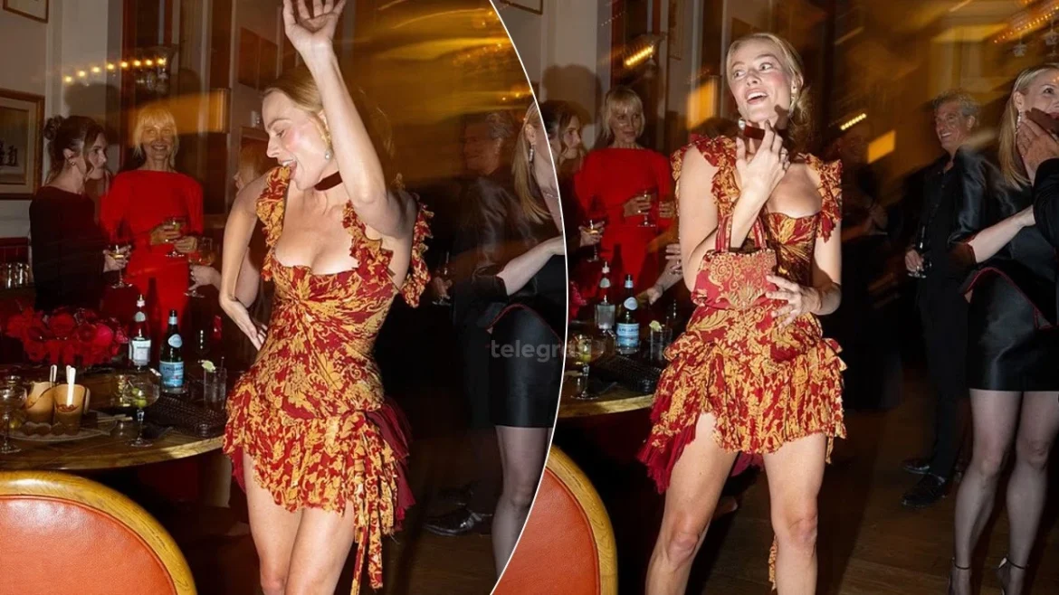 Margot u pa tejet e gëzuar gjatë festës, duke kërcyer dhe pozuar për fotografi me kolegët, përfshirë regjisorin Emerald Fennell.