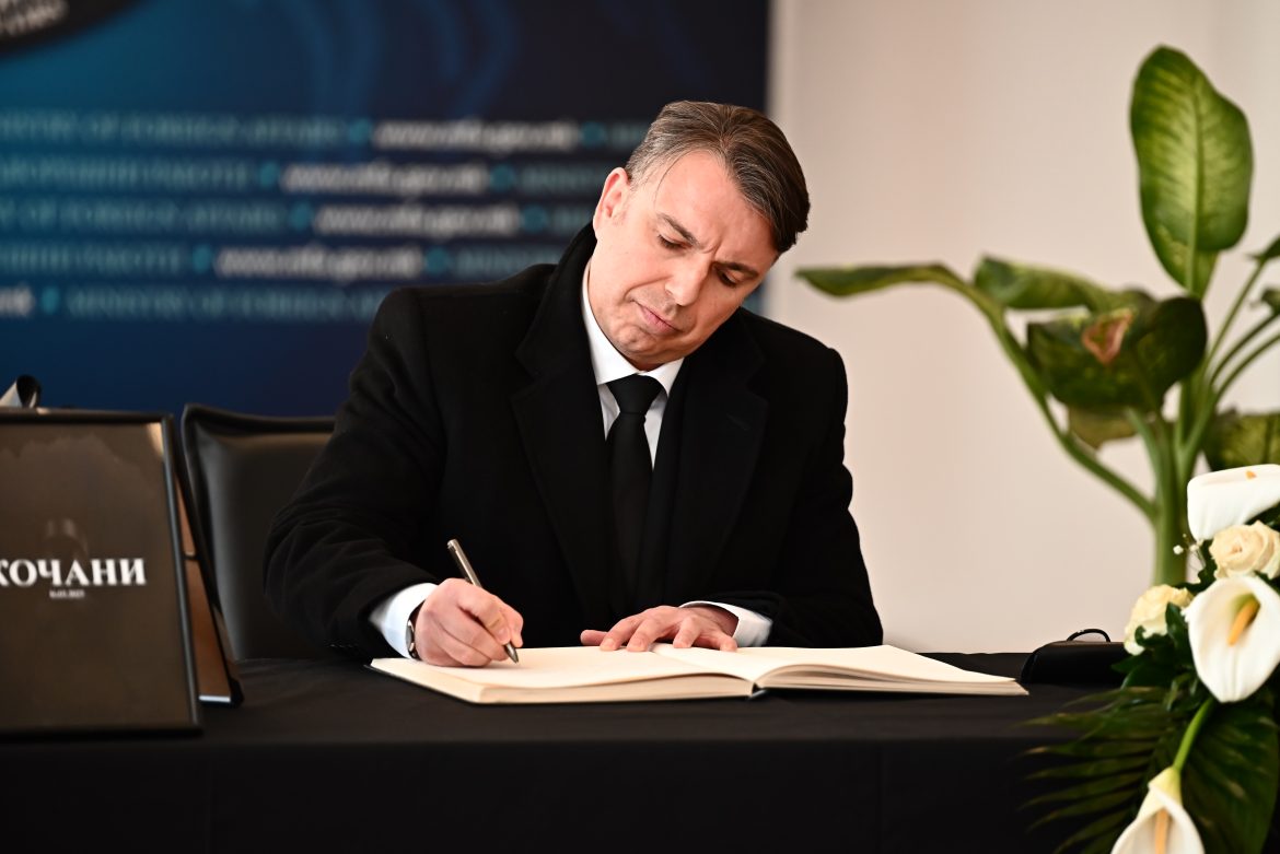 Ministri i Drejtësisë, Igor Filkov në librin e ngushëllimeve shpreh ngushëllime të thella për jetët e humbura tragjikisht të të rinjve në Koçan