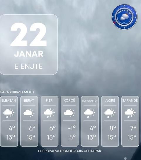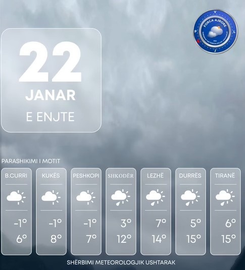 SHMU njofton se përgjatë ultësirës perëndimore dhe zonave bregdetare do të ketë reshje shiu të herëpashershme me intensitet kryesisht të ulët, ndërkaq këto reshje në periudha tepër afatshkurtra në formën e shtrëngatave.