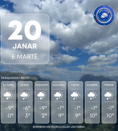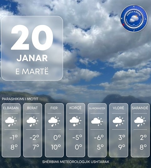 Shërbimi Meteorologjik Ushtarak bën të ditur se Shqipëria të martën do të ndikohet nga kushte atmosferike relativisht të paqëndrueshme.