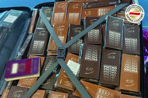“Në total u gjetën 600 pako me qerpikë artificialë gjatë kontrollit të çantave të një shtetase italiane që kishte ardhur në Aeroportin Ndërkombëtar të Shkupit me fluturim nga Roma”, thonë nga Drejtoria e Doganave.