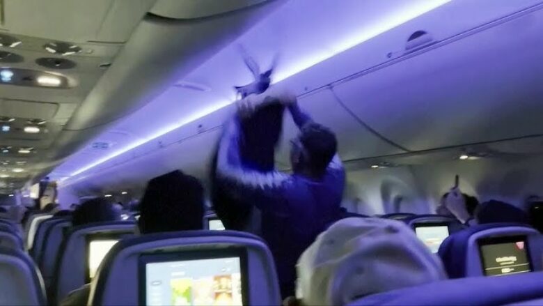 Videoja e postuar më poshtë, shfaq një nga pëllumbat që fluturon nëpër kabinë ndërsa një pasagjer përpiqet ta kapë atë me një xhaketë.