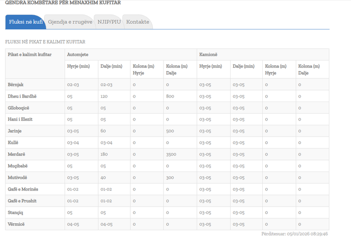 Sipas raportit të orës 08:29: pritjet më të mëdha janë regjistruar në pikën kufitare Merdar ku koha e pritjes për dalje arrin deri në 3 orë, ndërsa kolona e automjeteve shkon deri në 3500 metra.