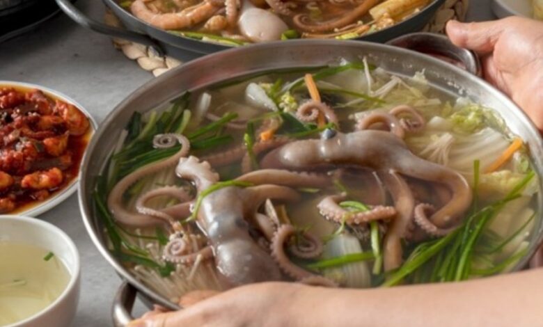 Tentakulat e oktapodit të gjallë konsiderohen si një specialitet në Korenë e Jugut dhe Japoni. Për shkak të rrezikut të lartë të mbytjes, duhet të jeni shumë të kujdesshëm dhe t’i përtypni tentakulat tërësisht. Shumë ekspertë kanë vënë në dukje se konsumimi i tentakulave të oktapodit të gjallë nuk rekomandohet, sepse nëse nuk i përtypni mirë ato mund t’ju ngecin në fyt dhe t’ju mbytin.