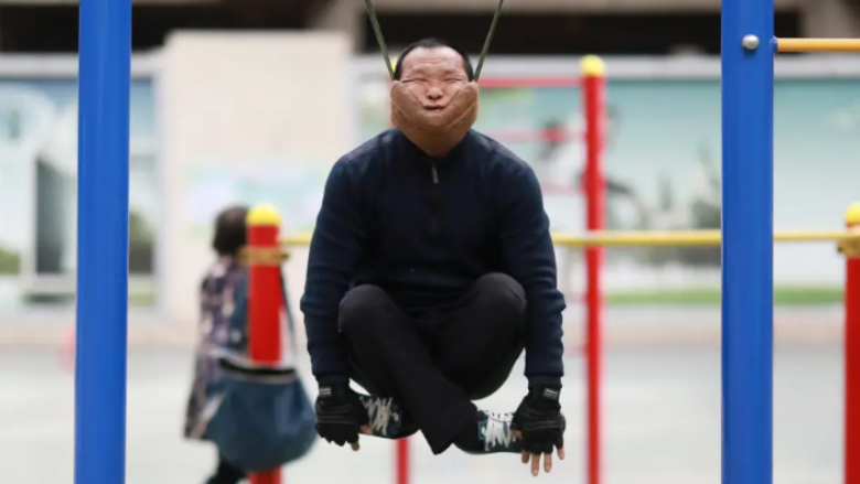 Pamjet e shpërndara tregojnë të moshuar që varin rripa në formë U-je të lidhur në shufrat e sheshit të lojërave rreth mjekrës së tyre dhe lëkunden butësisht para dhe mbrapa, me sa duket pa asnjë shqetësim.