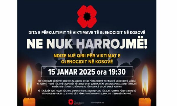 Qendra “Gjenocidi në Kosovë-Plagë e hapur” ka ftuar të gjithë shqiptarët që me datë 15 janar, kur shënohet edhe Dita e Përkujtimit të Viktimave të Gjenocidit të Serbisë në Kosovë, të ndezin qirinj.