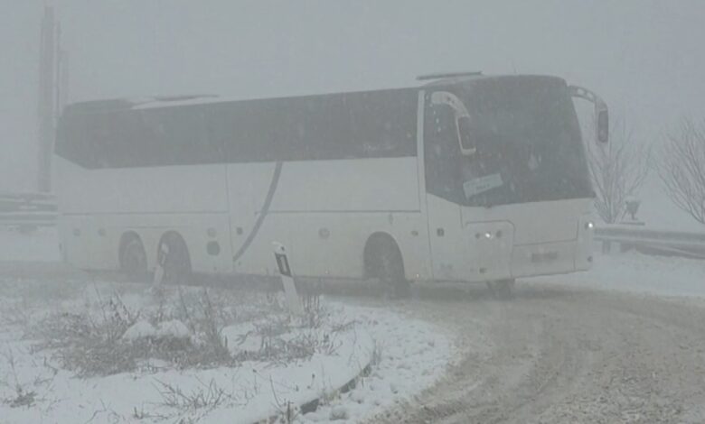Tetovë, 1 shkurt – Reshjet e borës shkaktuan vështirësi në qarkullim në disa zona të vendit. Rruga për në Kodrën e Diellit sërish u mbulua nga bora, ndërsa makina e autobusë që ishin nisur drejt kësaj pike turistike nuk mund të lëviznin. Disa shoferë kishin ndaluar për të vënë zinxhirë, pasi as gomat e dimrit nuk iu kryenin punë.