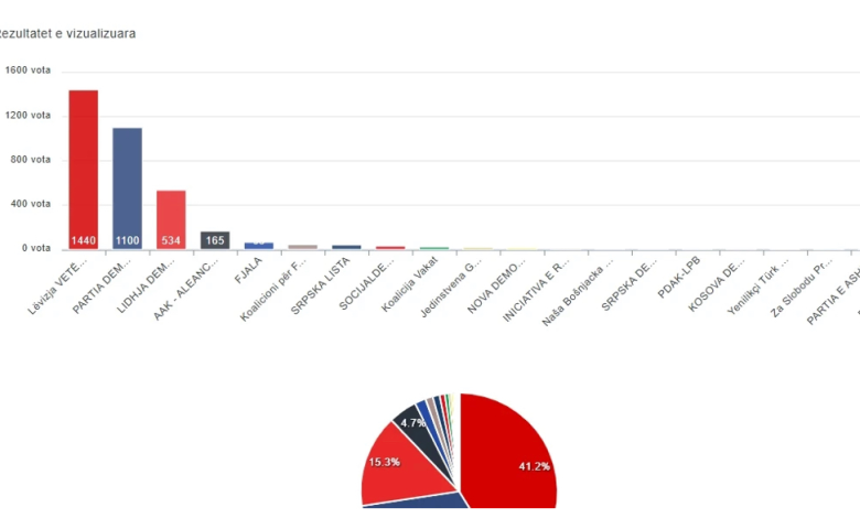 Sipas këtyre rezultateve, Lëvizja Vetëvendosje ka 55.77% të votave.