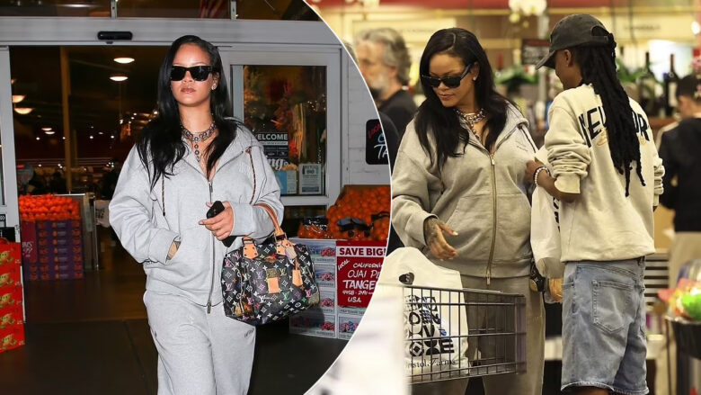 Rihanna ka nxitur sërish spekulime për një shtatzëni të mundshme, pasi u pa të dielën në Los Angeles me veshje të gjera dhe të rehatshme gjatë një pazari në Bristol Farms.