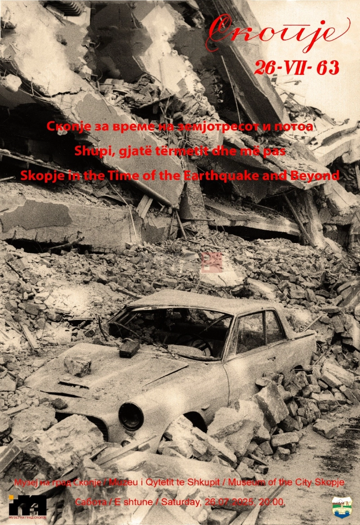 Në Muzeun e qytetit të Shkupit në orën 20:00, në nderim dhe përkujtim të viktimave të tërmetit katastrofik, që para 63 vitesh e la qytetin në rrënoja, do të hapet ekspozita “Shkupi gjatë tërmetit dhe më pas”.