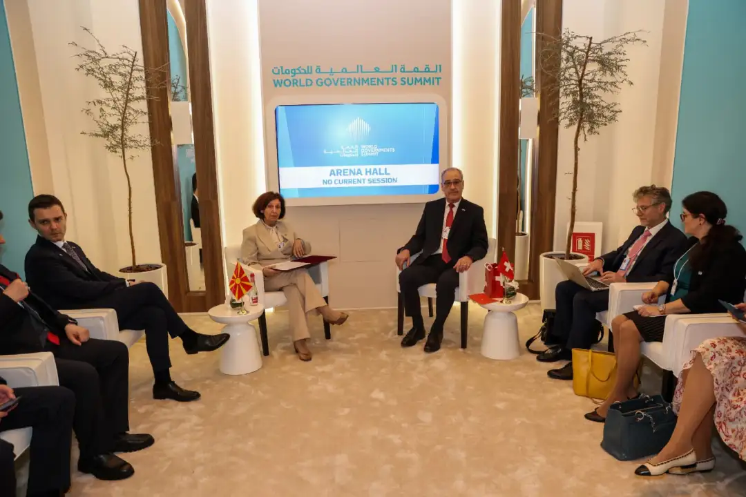 Shkup, 3 shkurt, Zhurnal.mk – Presidentja Gordana Siljanovska Davkova, në kuadër të pjesëmarrjes së saj në Samitin botëror të qeverive në Dubai, u takua me presidentin e Konfederatës Zvicerane, Gi Parmelan, në të cilin, siç njofton Kabineti i saj, u riafirmua niveli i lartë i partneritetit midis dy vendeve, i cili bazohet në miqësi, besim dhe respekt të ndërsjellë.