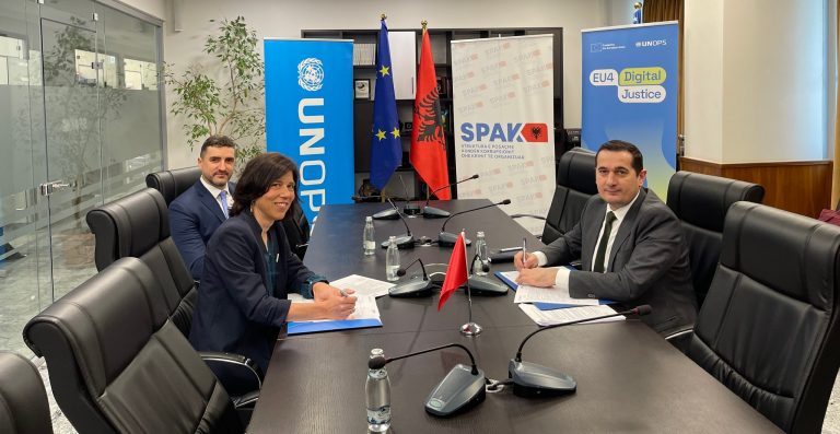 Në njoftimin e UNOPS, thuhet se ky Memorandum u nënshkrua nga kreu i SPAK, Klodian Braho dhe Sabine Kania, Drejtore e Zyrës së UNOPS-it në Shqipëri, në kuadër të projektit EU4Digital Justice.