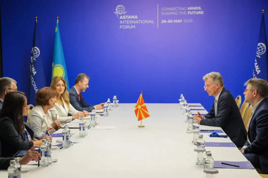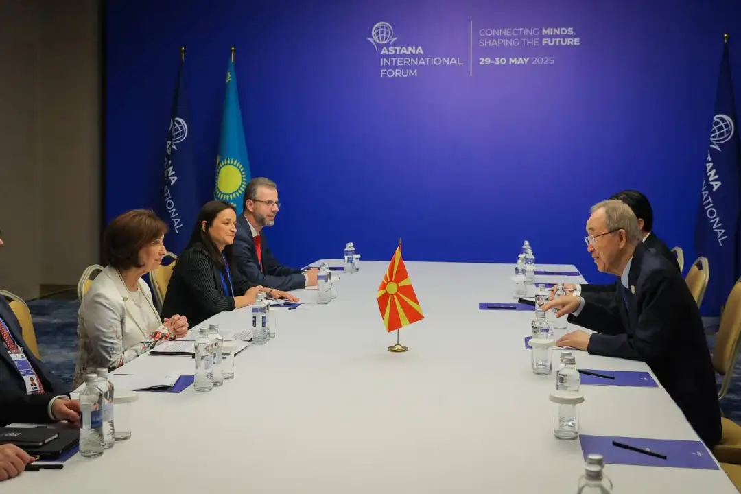 Shkup, 30 maj – Presidentja e shtetit, Gordana Sijanovska-Davkova, në margjinat e Forumit Ndërkombëtar të Astanës në Kazakistan ka zhvilluar takime me Ban Ki Munin, ish Sekretar i Përgjithshëm i Kombeve të Bashkuara dhe aktualisht kryesues i Këshillit të Institutit për rritje të gjelbër globale, me Kristof Hojsgen – ish kryesues i Konferencës për Sigurinë në Mynih, dhe me Felipe Polie, ndihmës sekretar i përgjithshëm i BE-së për çështje rinore.