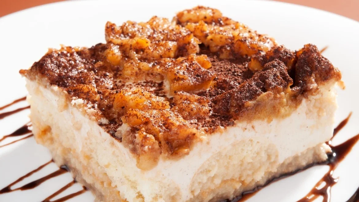 Rezultati është një tiramisu vjeshtor, i butë, kremoz dhe i pasur me shijen aromatike të mollës dhe arrës, gati për t’u shijuar për vetëm 10 minuta.