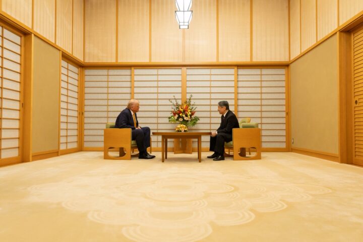 Më vonë Trump shkoi në Pallatin Perandorak, ku shtrëngoi duart dhe pozoi për fotografi me Perandorin japonez, Naruhito.