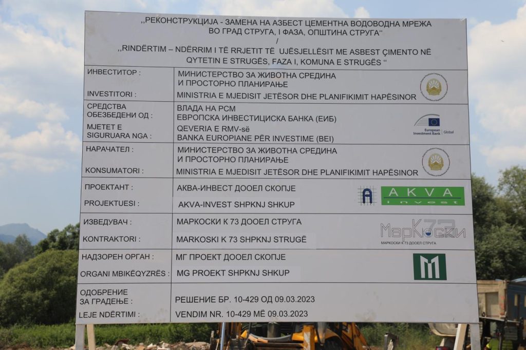 Strugë, 27 qershor – Ministria e Mjedisit Jetësor dhe Planifikimit Hapësinor zyrtarisht ka filluar fazën e parë të rikonstruksionit dhe zëvendësimit të rrjetit kryesor të ujësjellësit prej çimento-azbesti në qytetin e Strugës.