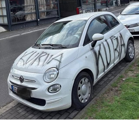 Vandalizohet një veturë “Fiat 500” në Shkup, mbushet me mbishkrime fyese