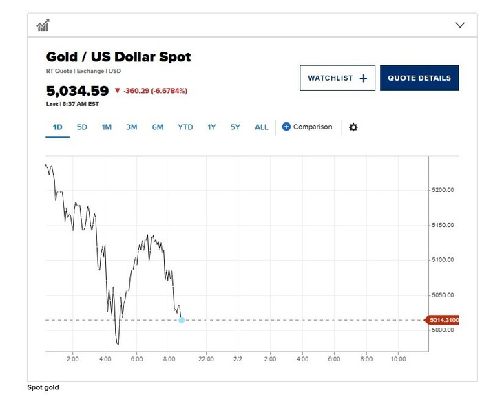 Ndërkohë, ari humbi rreth 7 për qind të vlerës, duke u tregtuar në nivelin 5,009.46 dollarë për ons.